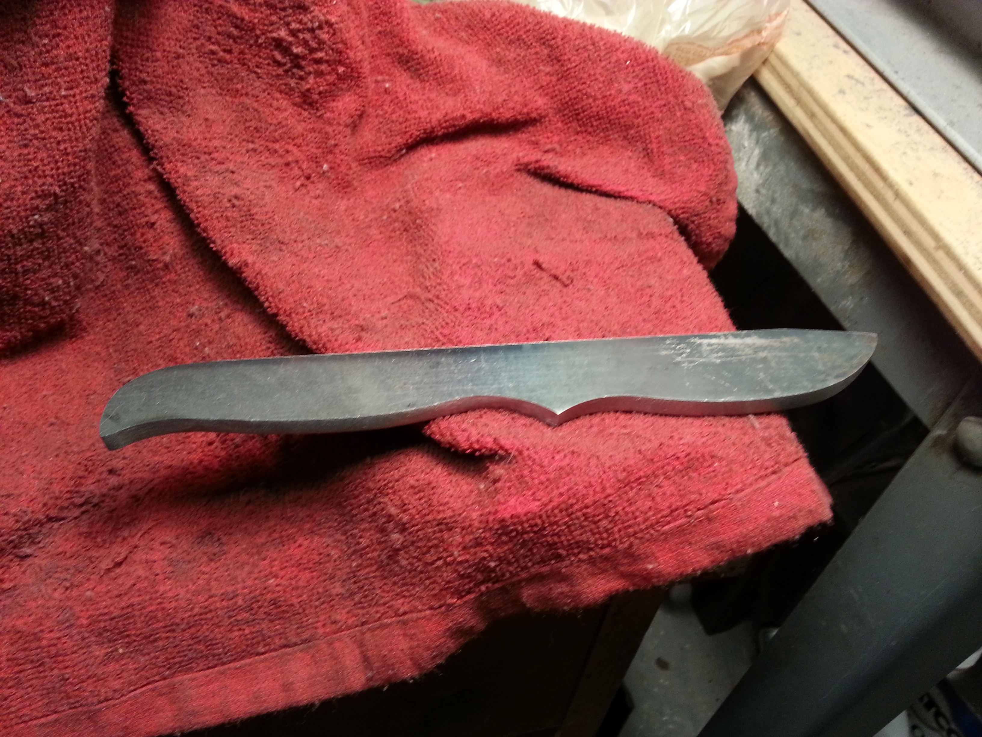 I have started my first knife from scratch. We will see how it goes. Here are some photos of the knife that I profiled. It has been a learning experience. The steel I used is 1080. It is my understanding that 1080 is a is a simple carbon steel that is great for beginning knife makers, easy to work, great hardening qualities. and makes a great knife. I will keep you posted on the progress.