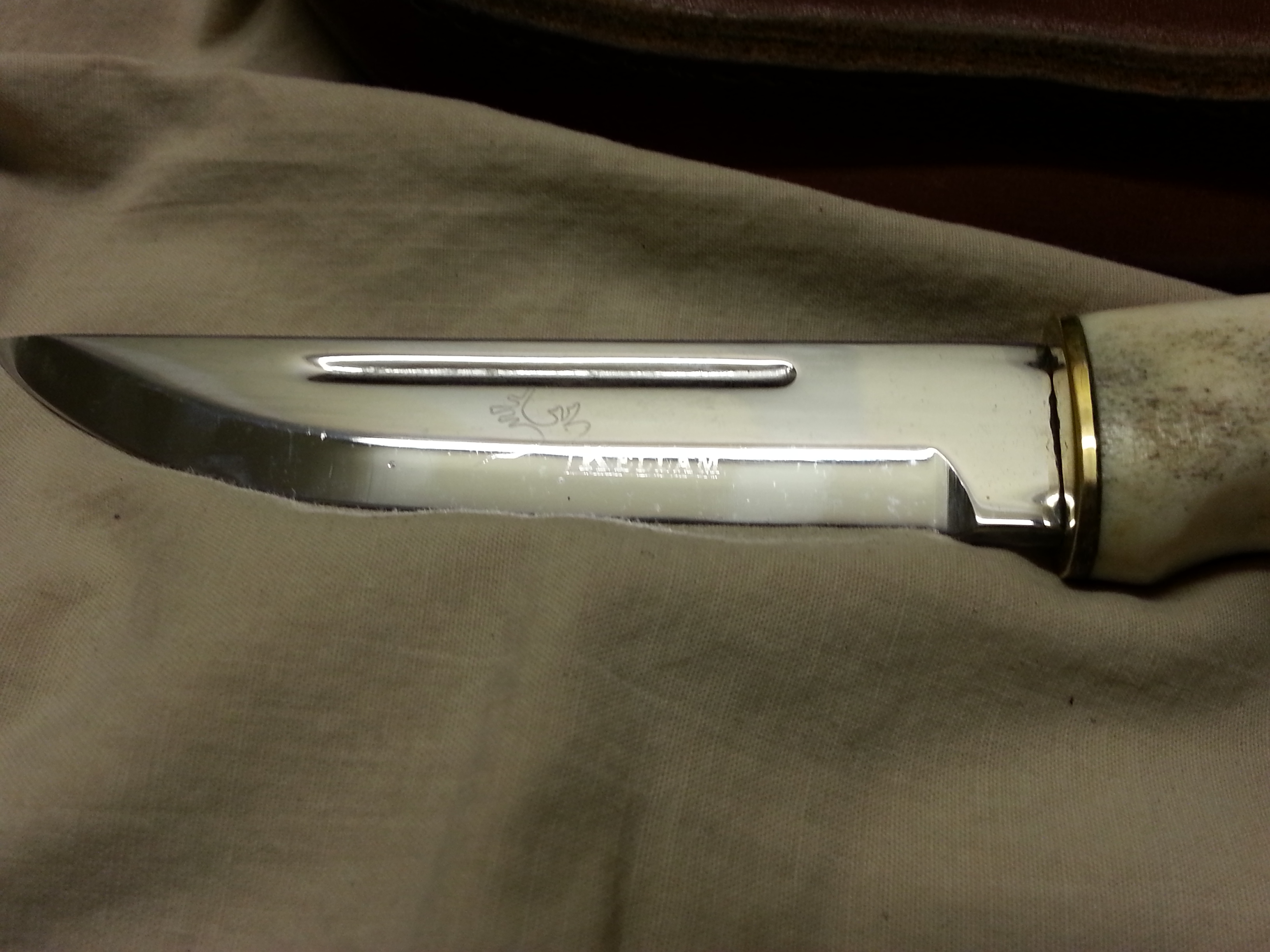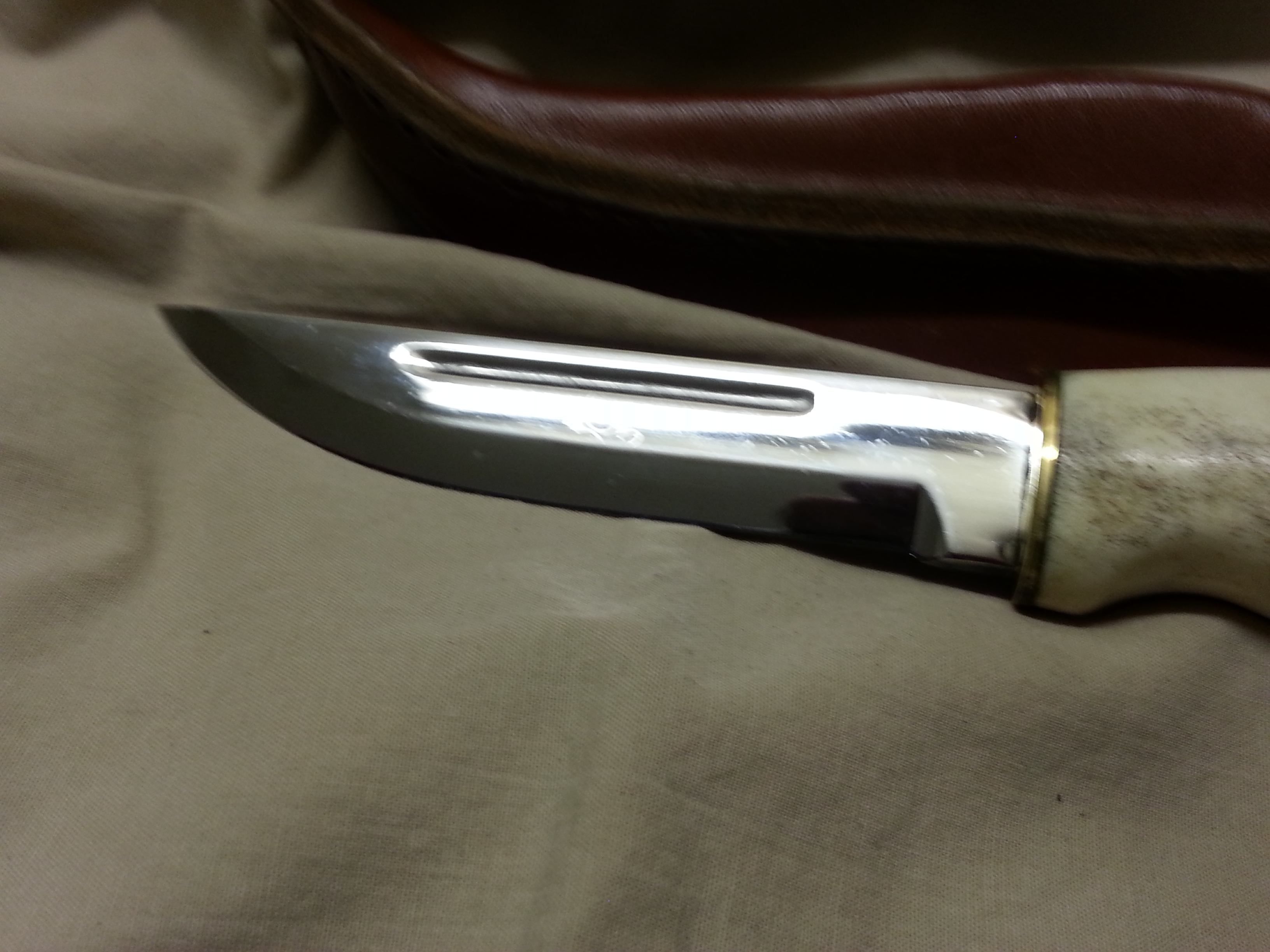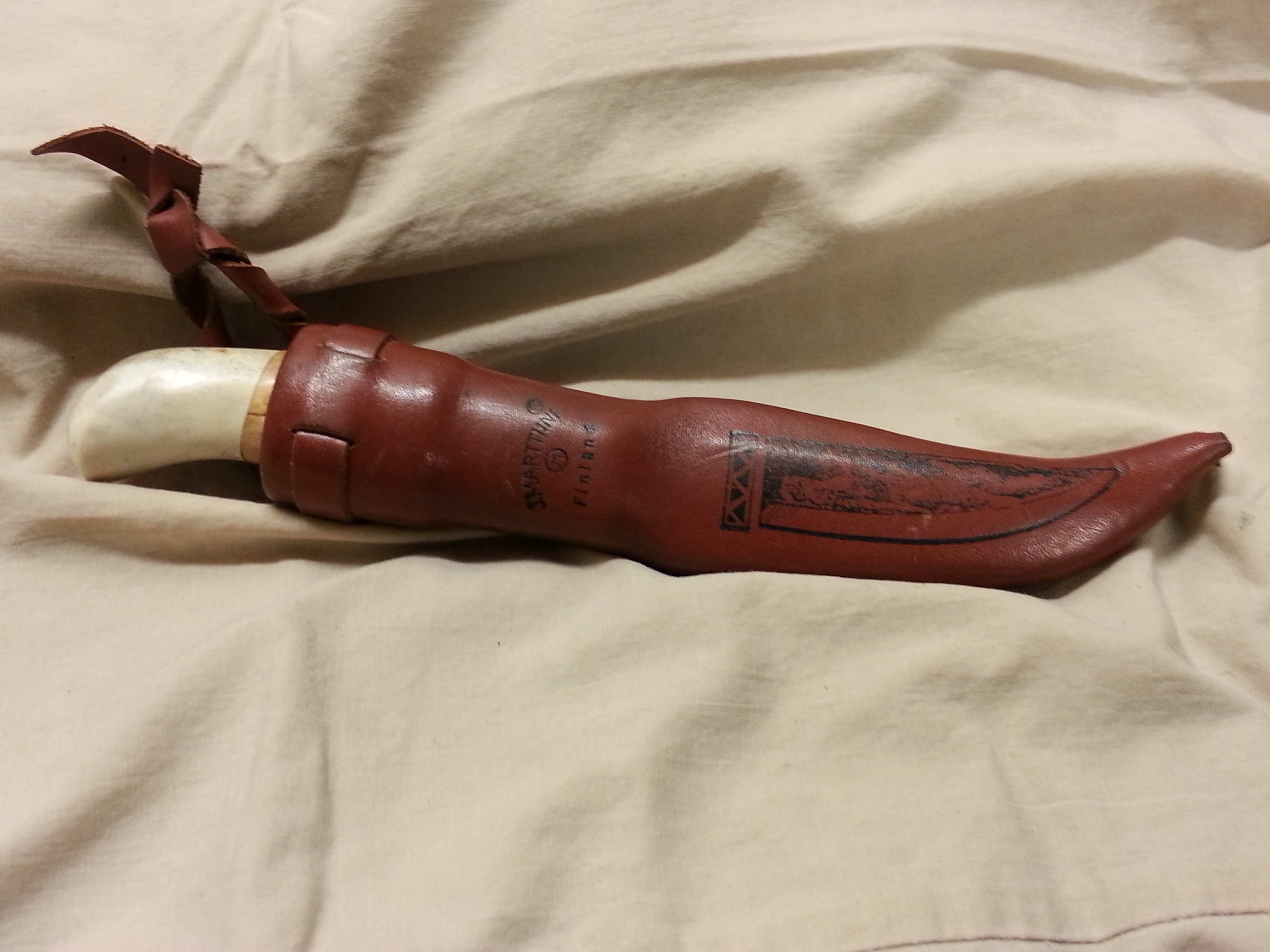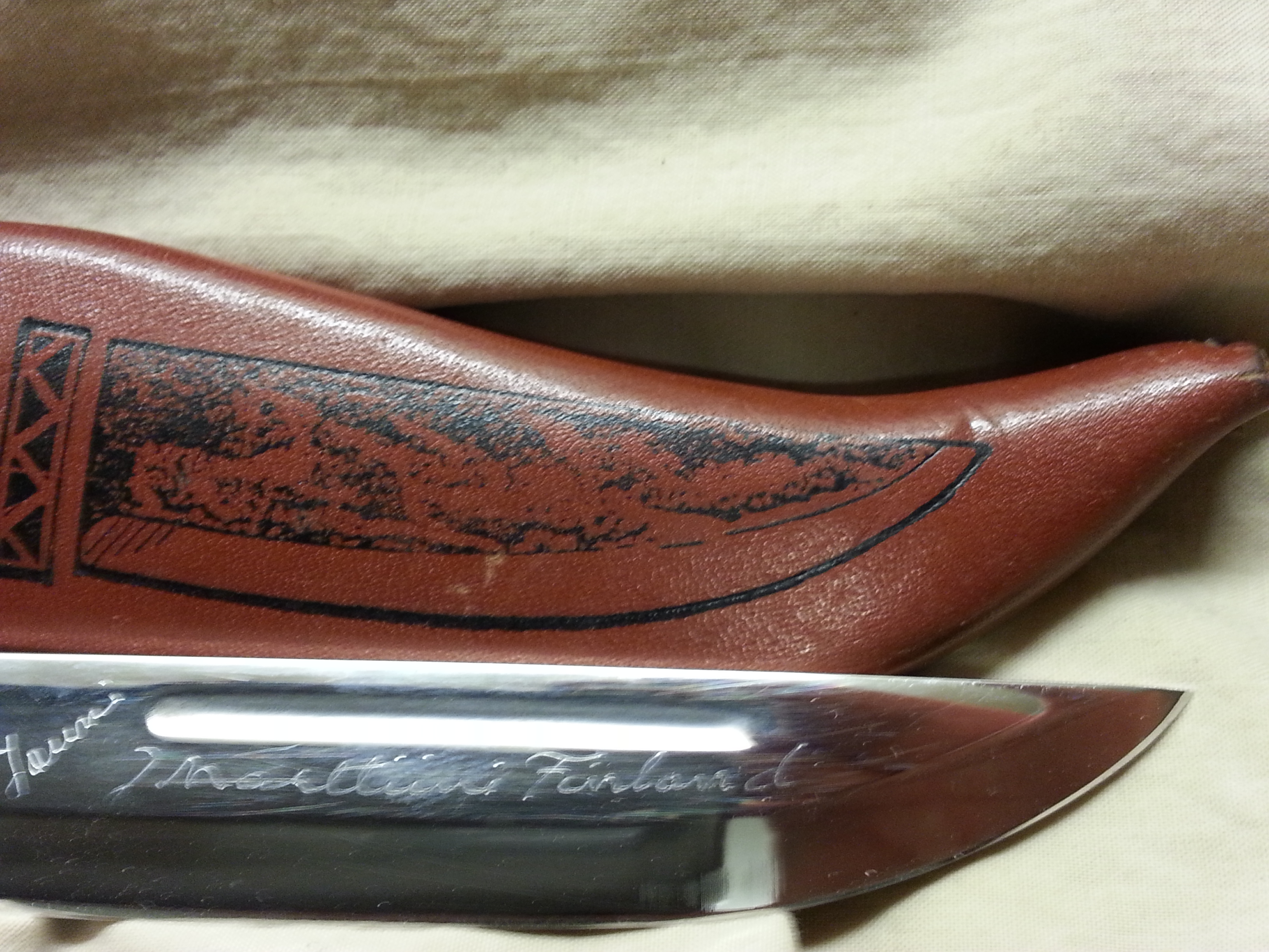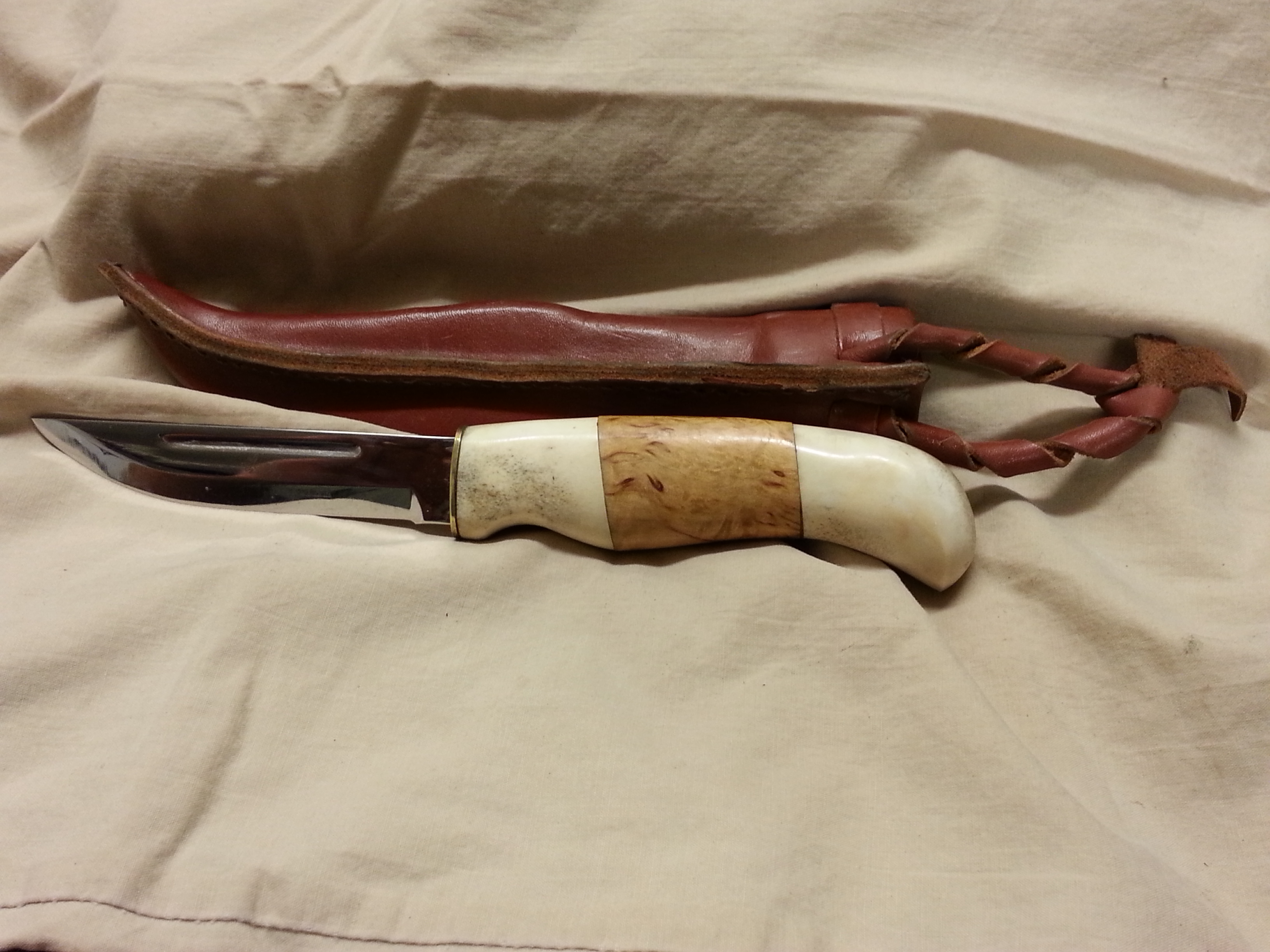 Description: This special model of a Finn puuko knife was designed by Jouni and given his name and includes a blood groove. This knife is hard to find. I would let it go for $100.00. It is in my personal collection and I intended to put it through the tests this deer season. It feels great in the hand. I was told when I bought the knife that it was laminated steel but could not verify that in my research. I will post some more pictures above as well.