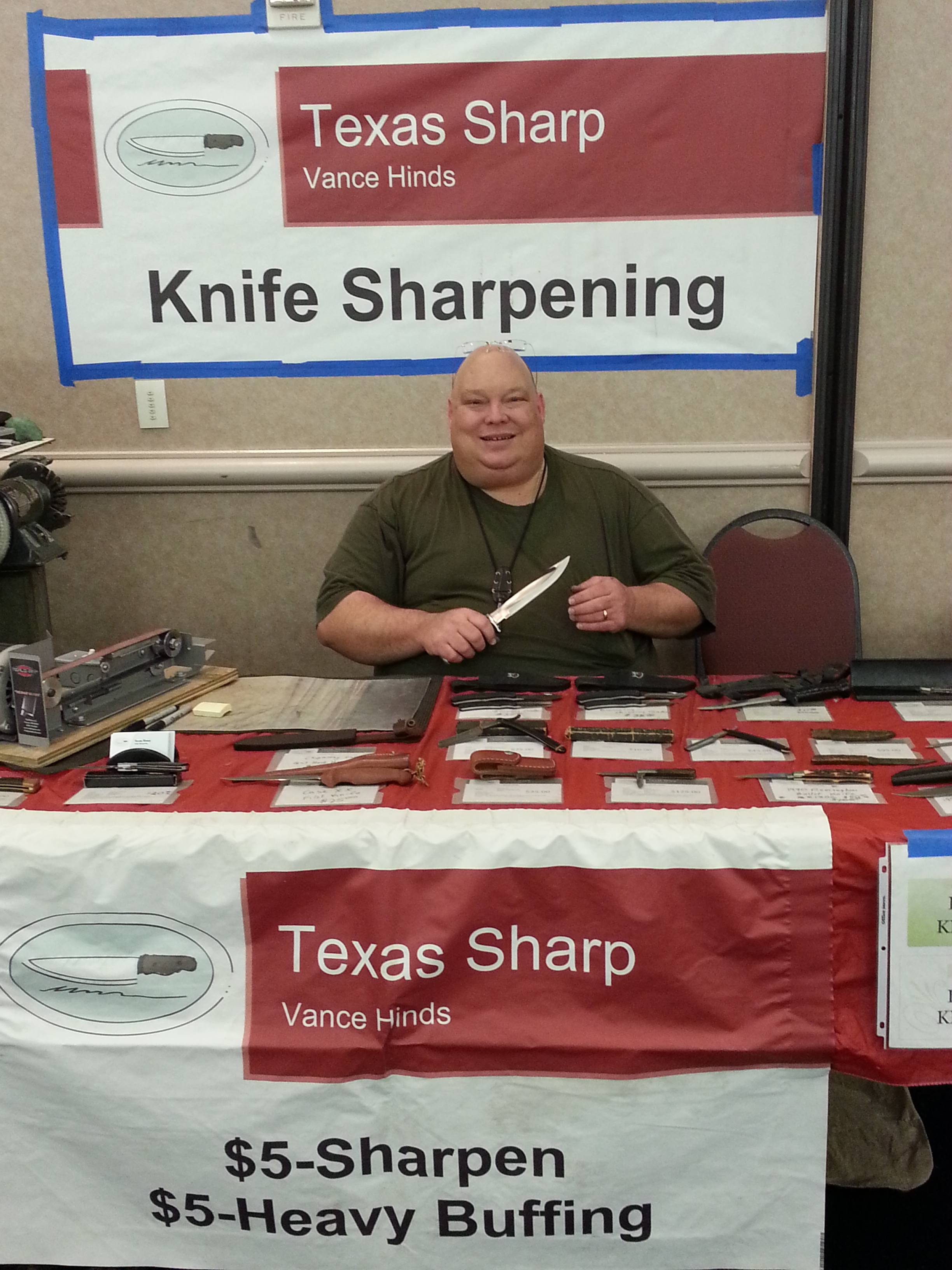 The Civic Center will be busy with guns, knives, ammo, accessories and even a slot machine (for sale). Come out and see me. Bring your knives, scissors, and other edged tools. Times are 9-5 on Saturday and 9-4 on Sunday. Admission is $7 for one day or $12 for both. My table is in the middle of the south wall. I have a sign taped on the wall. I hope to see you this weekend. As always $5 to sharpen and $5 for heavy buffing and clean up. Come See Me! Waxahachie Civic Center, Waxahachie, Texas, 2000 Civic Center Lane Waxahachie, TX 75165