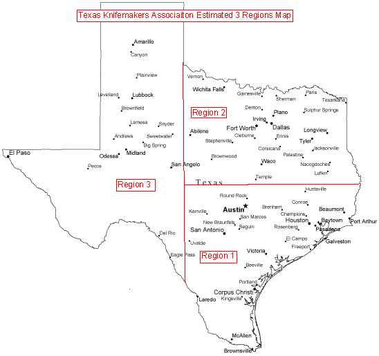 Texas Knifemakers Guild Regional Map and Regional Meetings